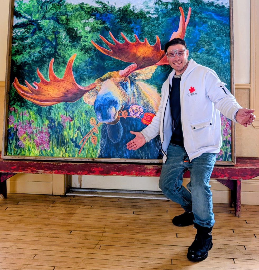 Moose painting by Maureen Harvey at the Athabasca Train Station March, 2026.